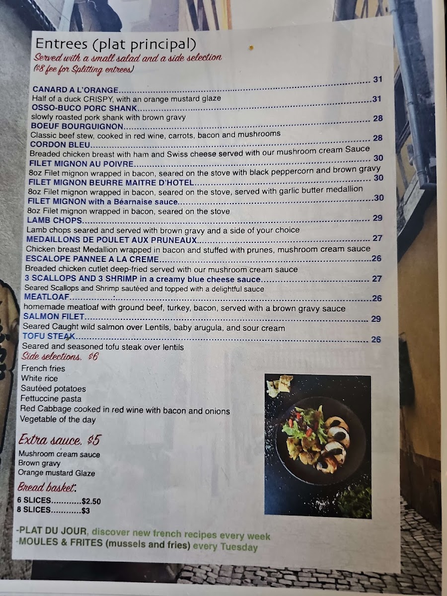 The menu at ALSACE French Bistro offers a thoughtfully curated selection that blends traditional French classics with comforting, approachable dishes. Whether you're settling in for a leisurely brunch or an intimate dinner, the menu features a range of options crafted to complement the restaurant’s relaxed and inviting atmosphere.